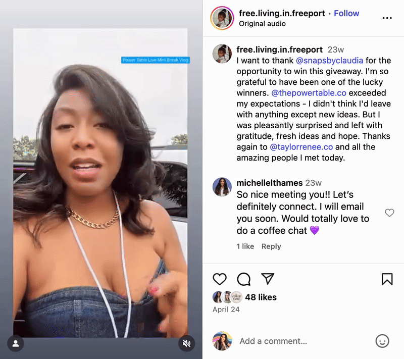 “I went from 0 collaborations on deck to 3 speaking opportunities and 2 podcasts hosts as well as several friends I now check in on weekly and they check in on me just as general “we’re in the trenches together” friendships!